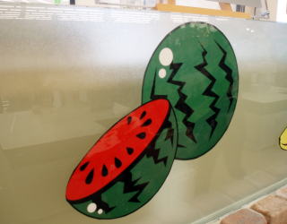 メロンシリーズ、最新作。 「クインシーメロン」です! となりにあるのは、おなじみ「マスクメロン」です。 素材の味の違いを、試してくださいね~(#^.^#)