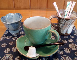 お休みで、桐生におでかけ。 桐生市の、陶器屋さん「パセオ」で、 コーヒーカップを購入。 ついでに店内で、喫茶! 作家さんの作った、一点ものの器って、 味があります・・・