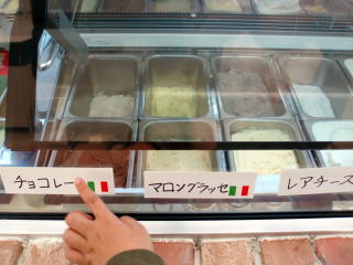 新商品の「マロングラッセ」の写真を撮ろうとしていたら、 アイスを食べに来た、ちびっ子のかわいい手が・・・! 「チョコレート」が、どうしても 食べたかったようです。 かわいい、1シーンでした・・・(^^)