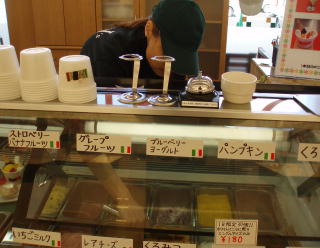ミラノのアルバイトスタッフ8人中、 この春、高校卒業した女子、4人です! ワクワクする想いを胸に、 アイスを売っています!(^^)