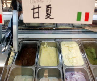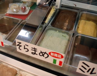 ほのかなグリーンが やさしい「そらまめ」。 味もやさしいんです。 そのほか、 シャープなライトグリーンの 「マスクメロン」。 深いグリーンの「抹茶」。 この季節、グリーンのアイスが ちょっと、いいんです・・・(^^)